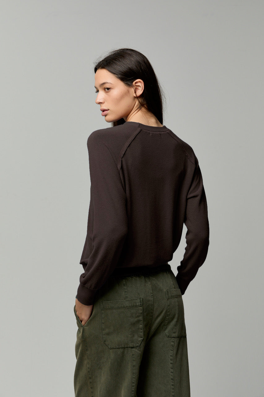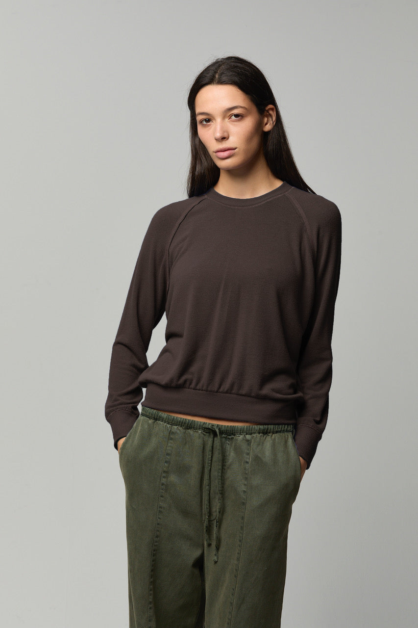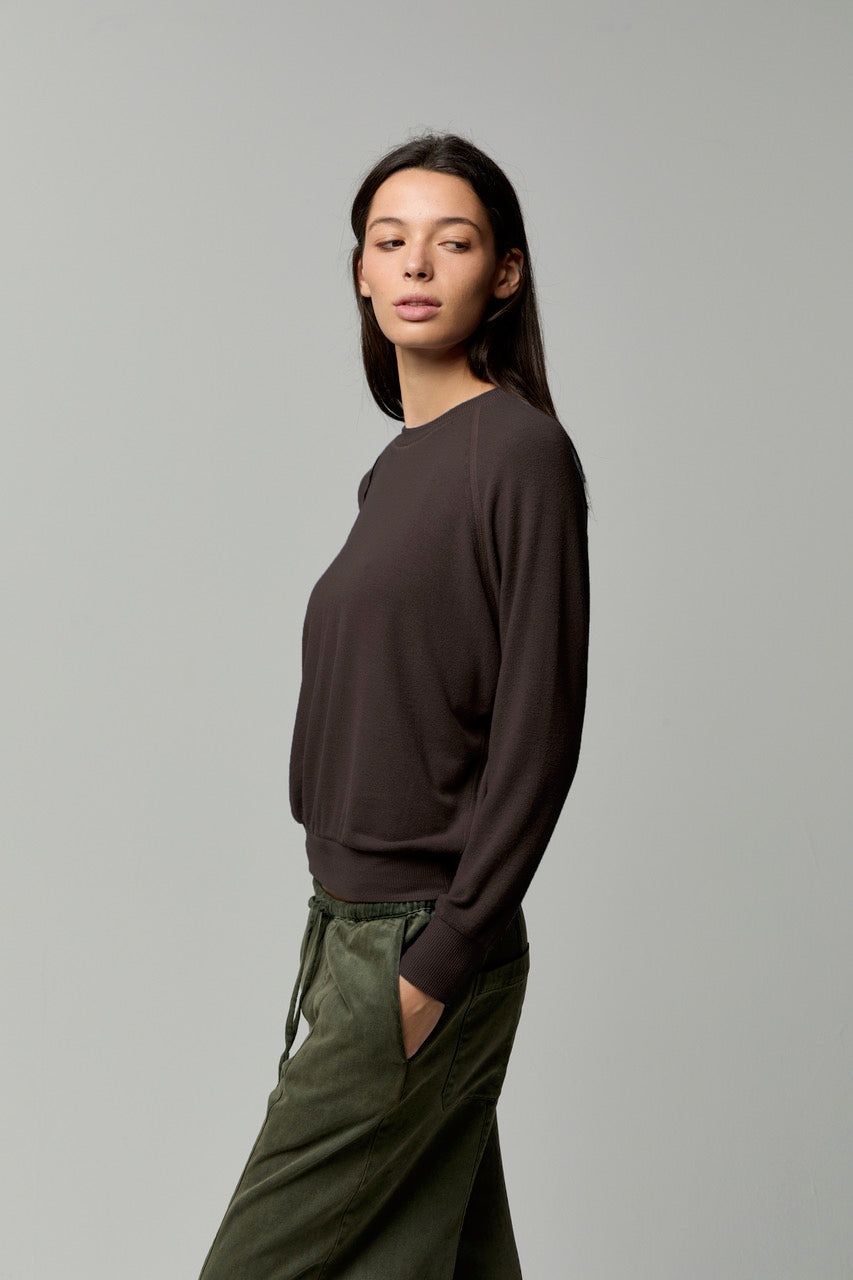 Made from buttery-soft brushed sweater jersey, it offers cozy warmth without weight. Finished with exposed seam detailing for an effortless, lived-in feel.
