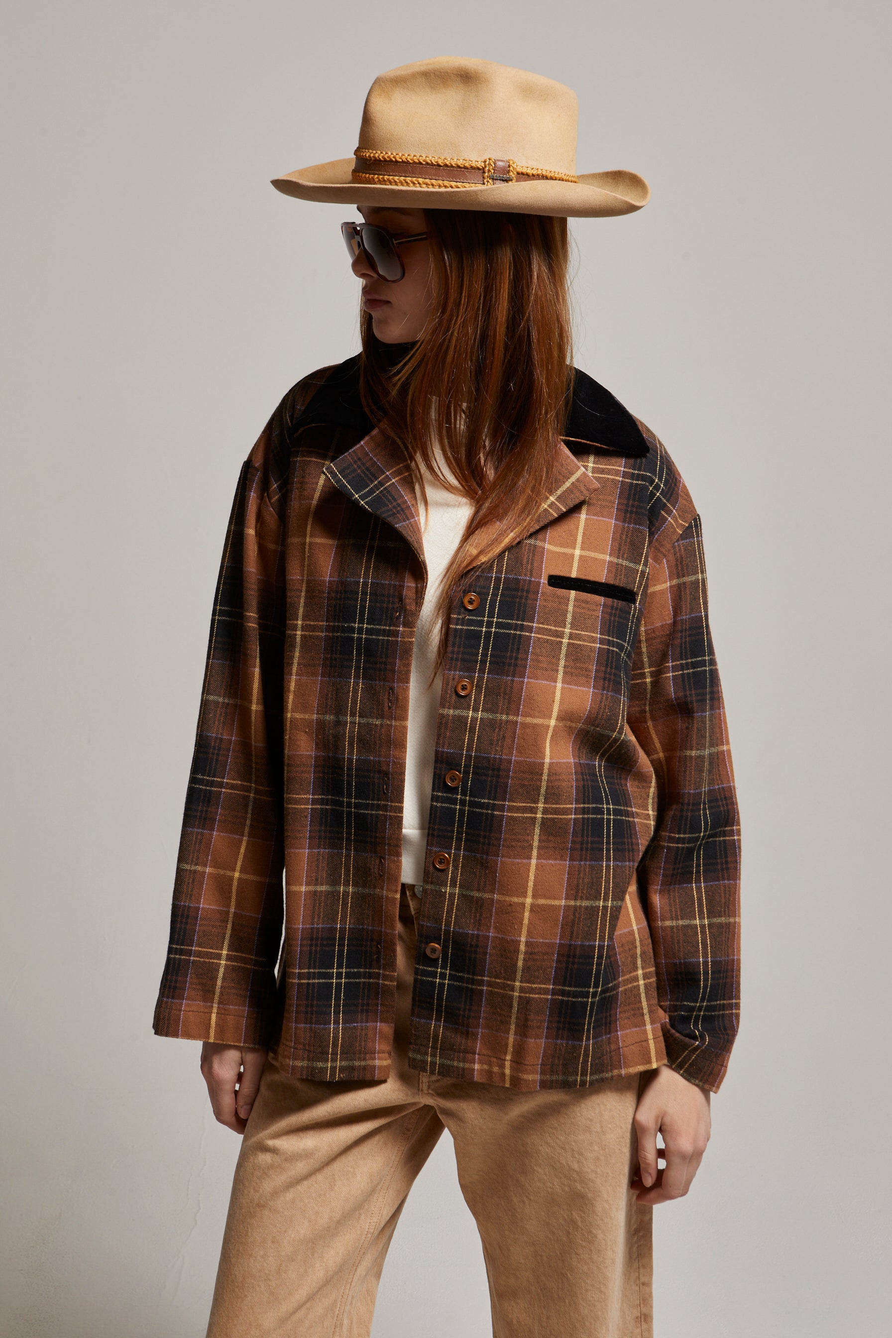 The Paris Plaid Shirt is designed with clean tailoring and a strong silhouette, offering a modern twist on a heritage pattern. The mid-weight fabric gives it structure and presence, while the contrast velour collar and button-front design balance polish with ease. Wear it cinched at the waist with a belt for a defined shape, or keep it relaxed and undone for a more effortless look.